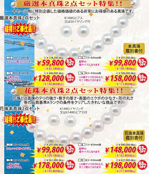 真珠の価格が高騰しておりますが、この3日間だけは利益率を抑えに抑えて、良い品をお求めやすく赤札大還元価格でご提供いたします!!